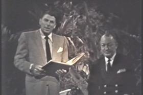 click on the button above to see: The Family's personal copy. Originally shot live, ABC provided the family with a copy on 16 mm film. It was later digitized for preservation purposes. This segment you are viewing is the family personal copy. This segment was hosted by Later President Ronald Reagan (above), since the normal host, Ralph Edwards, had been briefly hospitalized.