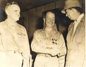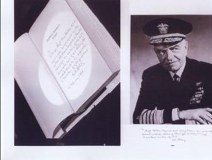 In the photo above, Then Admiral Halsey (later promoted to Fleet Admiral, a 5 Star position only occupied by a few Officers of all US services in the history of the US), Eleanor Roosevelt, wife of President Roosevelt, and Miller in the middle, at the first of several medal ceremonies for Lt. Hugh Barr Miller, Jr. – The Navy’s One Man Army .