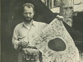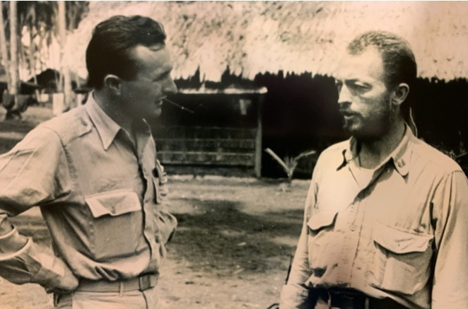 Frank Tremaine, the famous Life war correspondent with Lt. HB Miller, Jr shortly after Miller's rescue, on Guadacanal in 1943, as they discussed Miller's extraordinary exploits on Arundel Island (since renamed)